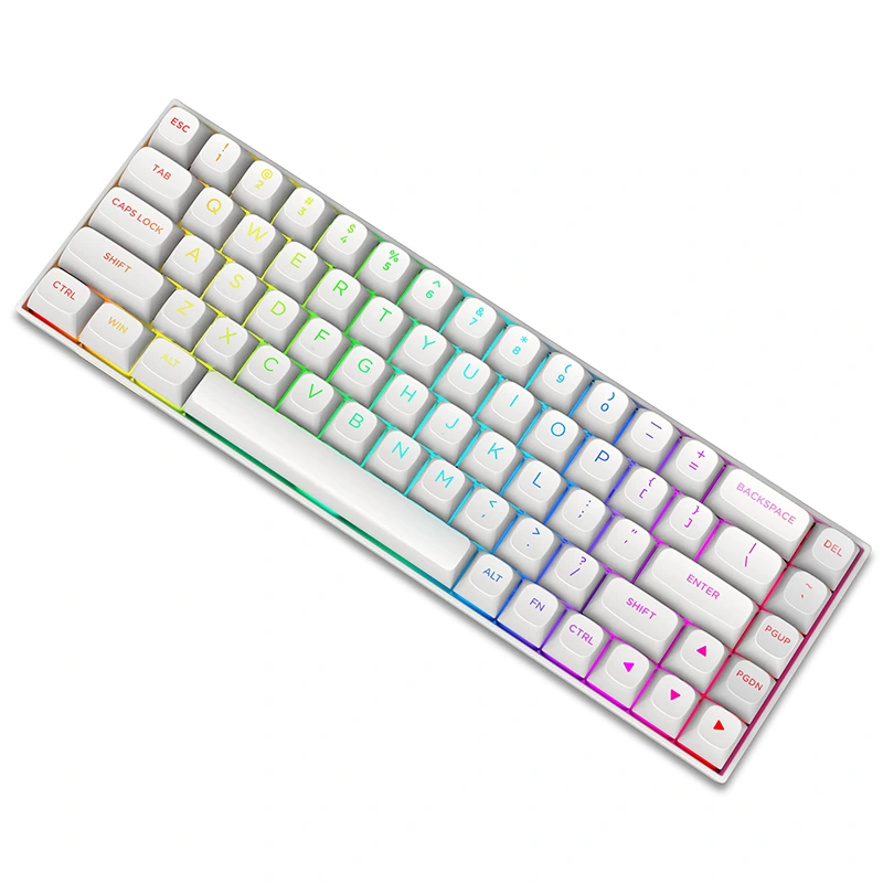 ❤ PBT-sleuteldoppen en 68 toetsen: de stevige PBT-sleuteldoppen zorgen voor duurzaamheid en een lange levensduur, terwijl het compacte ontwerp met 68 toetsen een efficiënt gebruik van de bureauruimte mogelijk maakt zonder afbreuk te doen aan de functionaliteit.