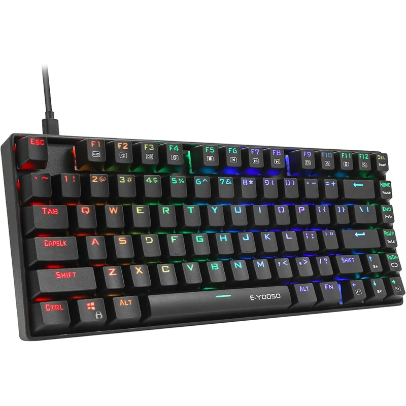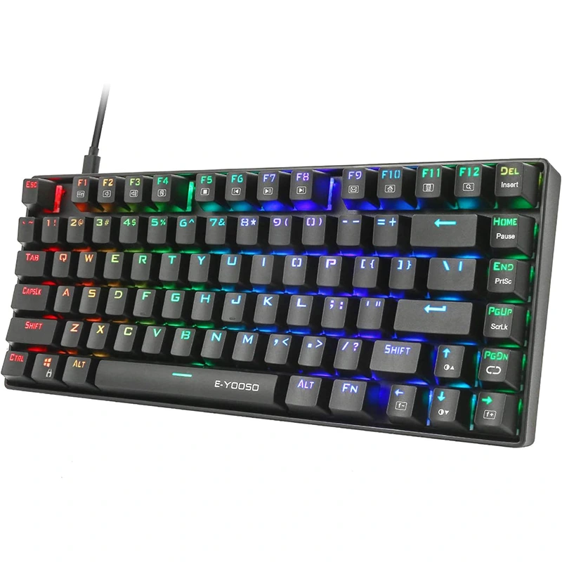 E-Yooso Z-88 PRO 60% compact 81 toetsen RGB mechanisch blauw schakelaar LED-backlit gamingtoetsenbord, met waterbestendig en anti-ghosting voor karakteristiek