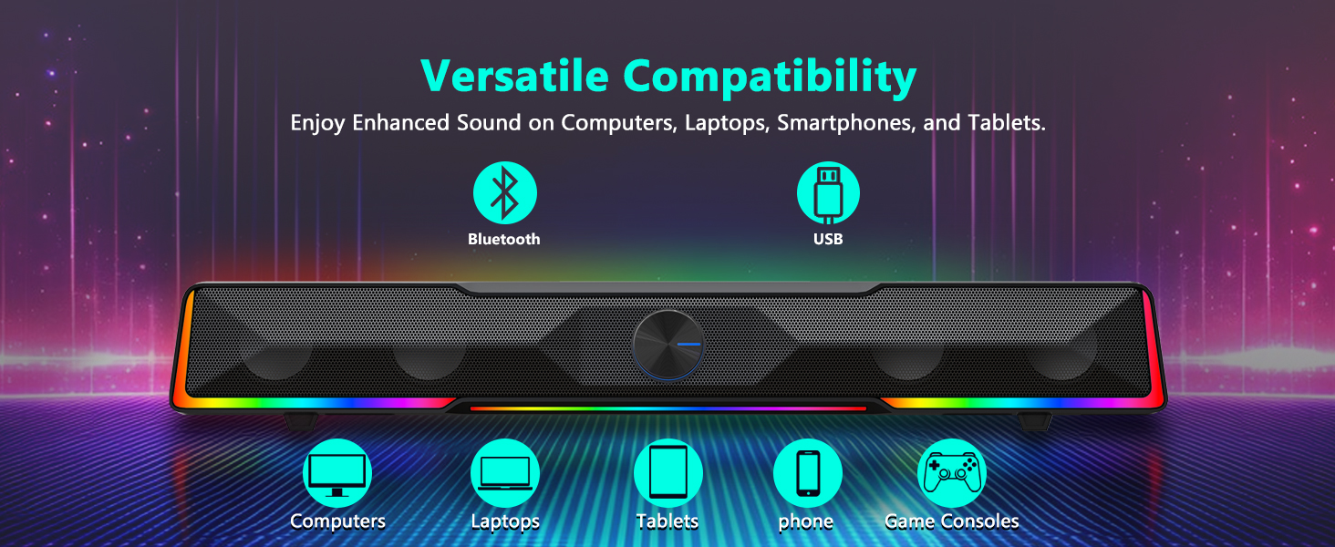 Compatibele apparaten De zwarte GS516 Bluetooth/USB-kabelverbinding Soundbar Volumeknop Computerluidspreker is ontworpen om met een grote verscheidenheid aan apparaten te werken. Compatibele apparaten omvatten doorgaans: