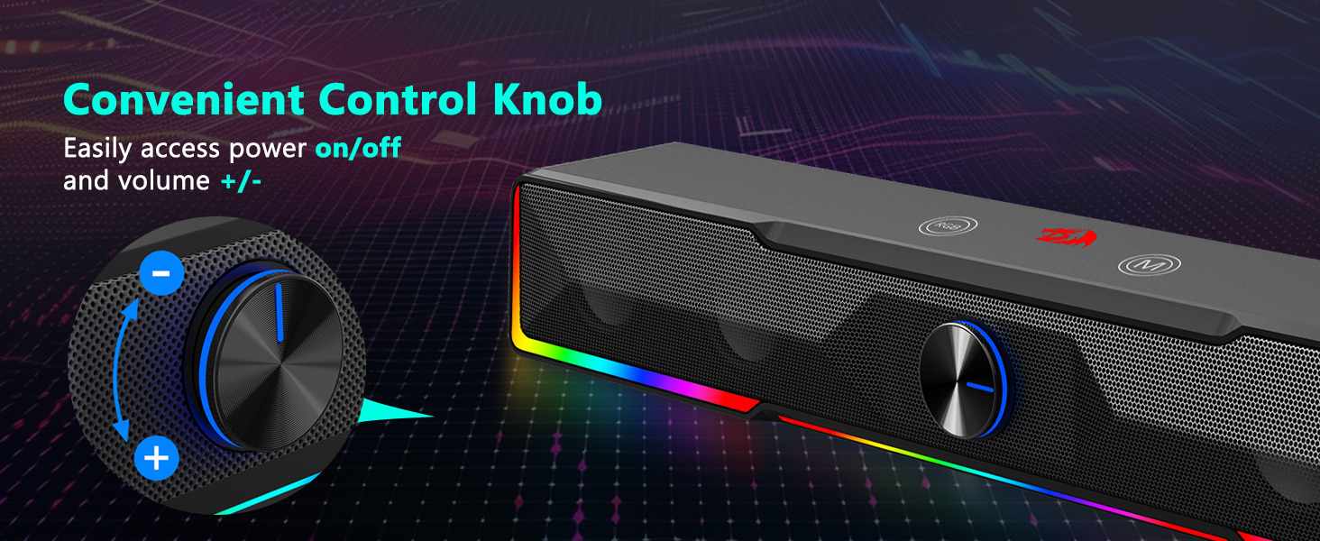 Soepele volumeknopbediening De geïntegreerde volumeknop is een van de handigste kenmerken van de zwarte GS516 Bluetooth/USB-kabelverbinding Soundbar Volumeknop Computerluidspreker. In plaats van het geluidsniveau aan te passen via de systeeminstellingen, kunnen gebruikers eenvoudigweg aan de knop draaien om het volume direct te verhogen of te verlagen. Deze tactiele bediening verbetert de bruikbaarheid tijdens gamesessies, het afspelen van muziek en videoconferenties.