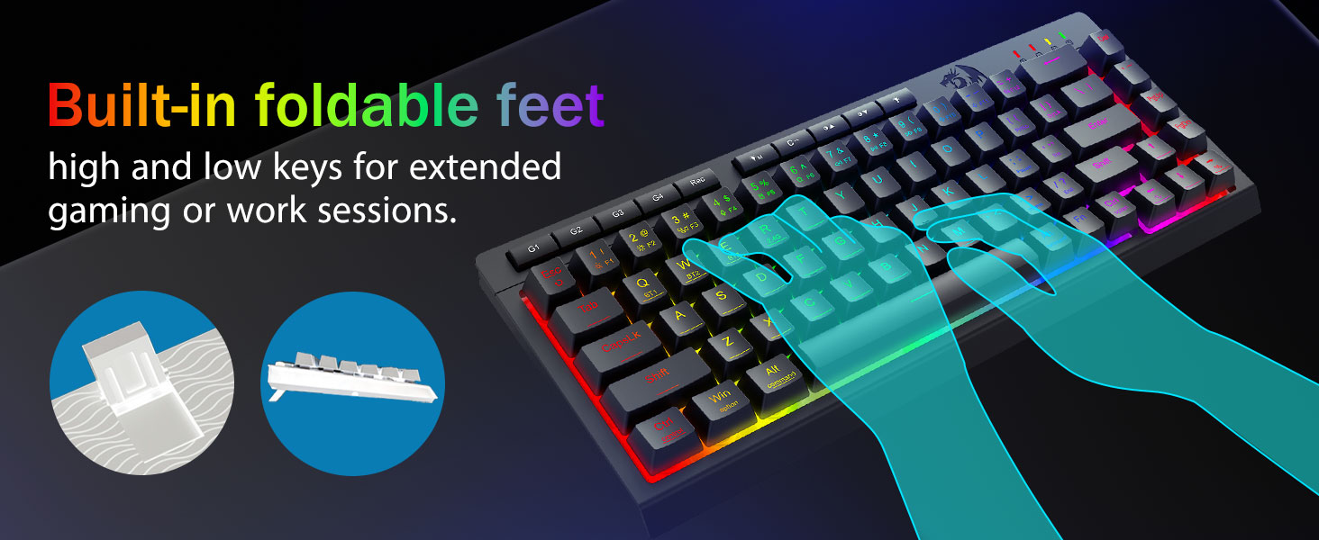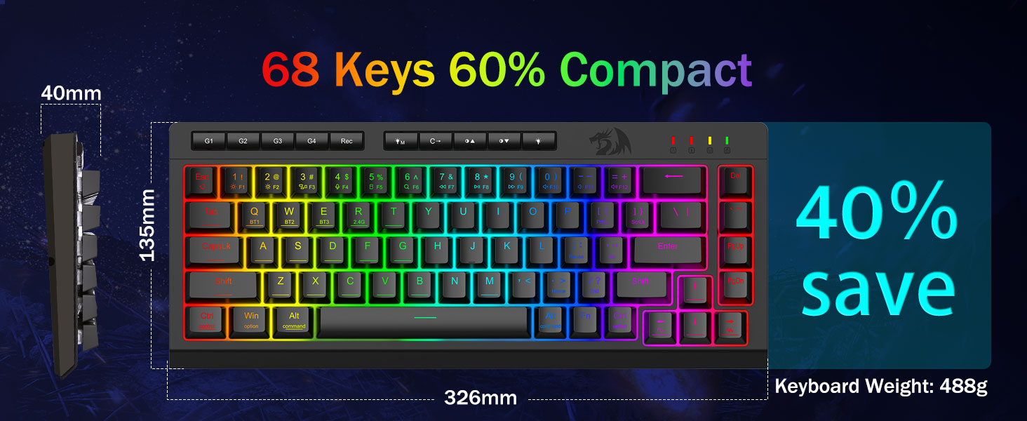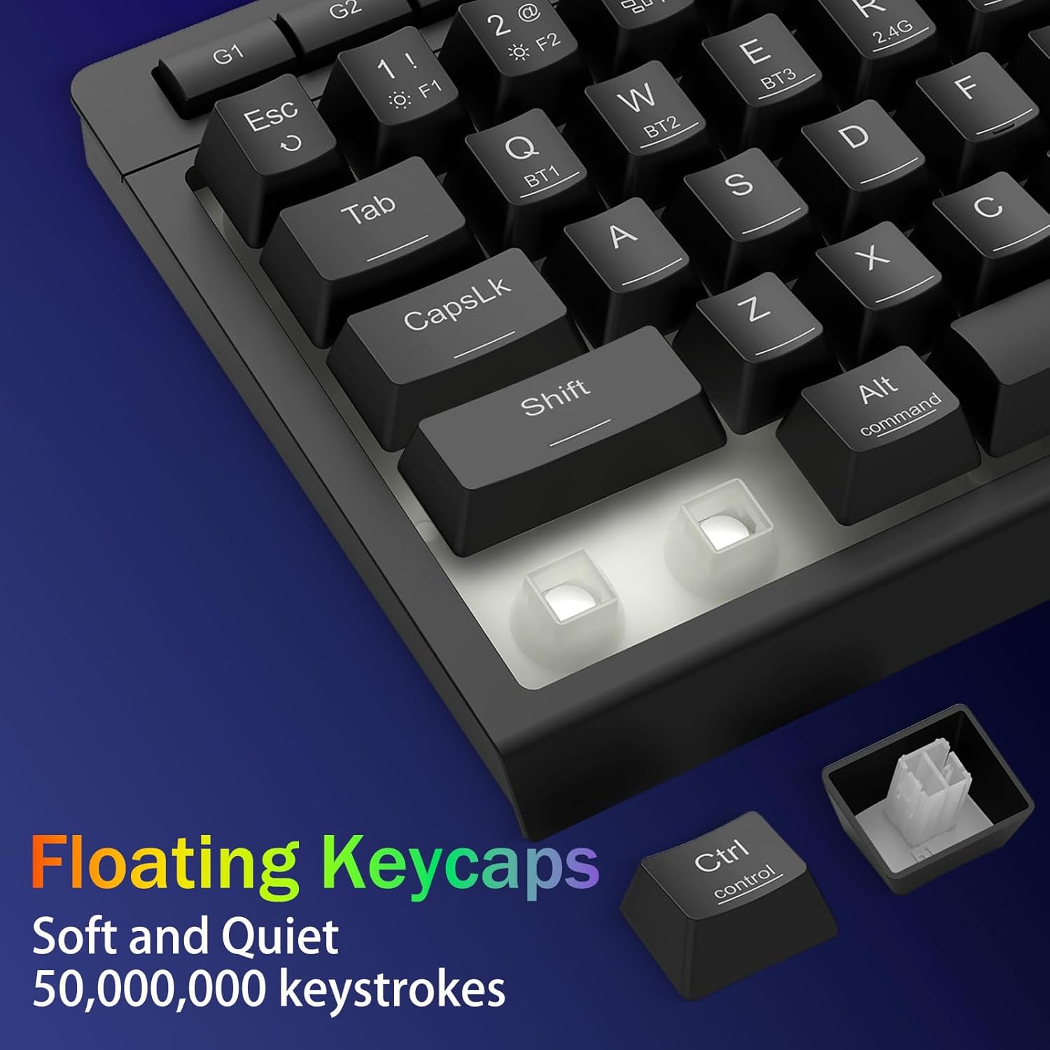 Meeslepende RGB-verlichting en aanpasbare sfeer -Ontketen 16,8 miljoen RGB-kleuren met 8 vooraf ingestelde modi (Rainbow Wave, Reactive Typing) + 6 doe-het-zelf-profielen. Pas de helderheid aan van levendige gloed tot stealth-modus: ideaal voor gamen 's avonds laat of op kantoor.