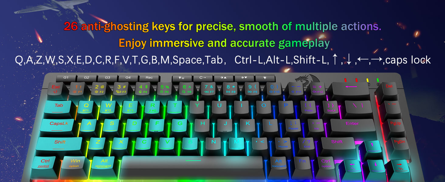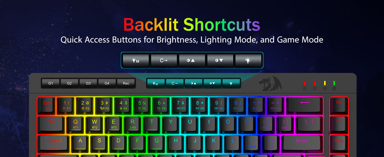 Pro-grade gamingprestaties en speciale bediening met achtergrondverlichting -Met anti-ghosting-toetsen (toetsen met een onderstrepingsteken) waarmee 26 toetsen tegelijkertijd kunnen werken voor snelle en nauwkeurige spelreacties zoals jij het bedoeld hebt. Snelle toegangsknoppen voor helderheid, verlichtingsmodus en gamemodus om snel de helderheid en verlichtingsprofielen aan te passen en de gamemodus in te schakelen met één druk op de knop.