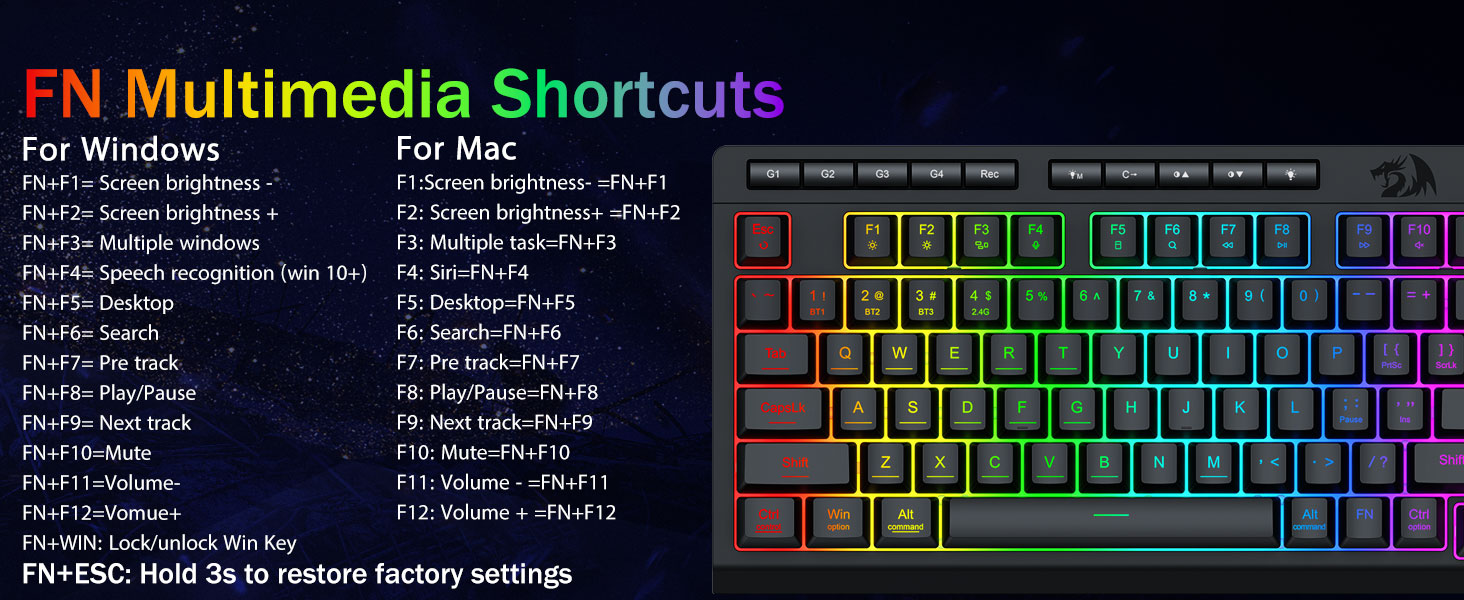 Aanpasbare macro's, moeiteloze bediening- Programmeer de 4 ingebouwde macrotoetsen (G1-G4) direct - geen software vereist. Neem complexe combo's op voor gaming, snelkoppelingen voor productiviteit of mediaopdrachten. Herdefinieer uw workflow in enkele seconden. U kunt ook software gebruiken om functies aan te passen, macro's te maken, RGB-verlichting aan te passen en snelkoppelingen in te stellen.