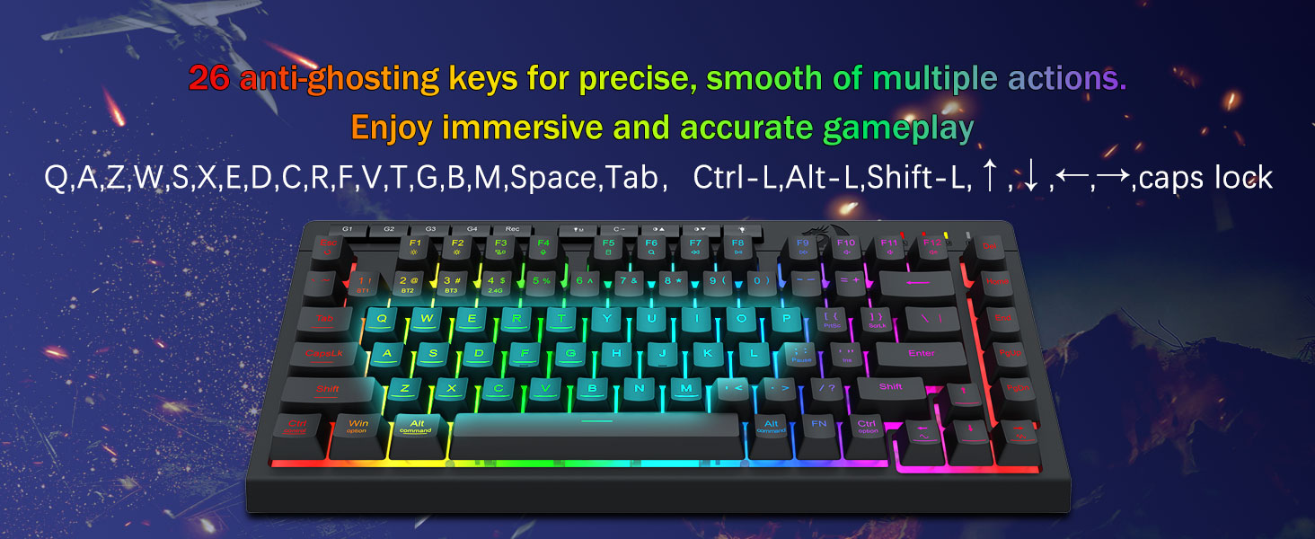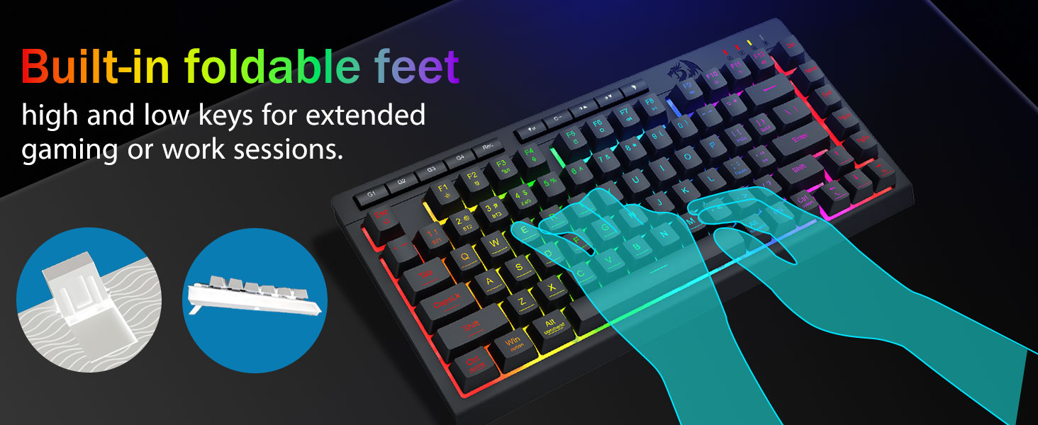 Meeslepende RGB-verlichting en aanpasbare sfeer- Ontketen 16,8 miljoen RGB-kleuren met 8 vooraf ingestelde modi (Rainbow Wave, Reactive Typing) + 6 doe-het-zelf-profielen.