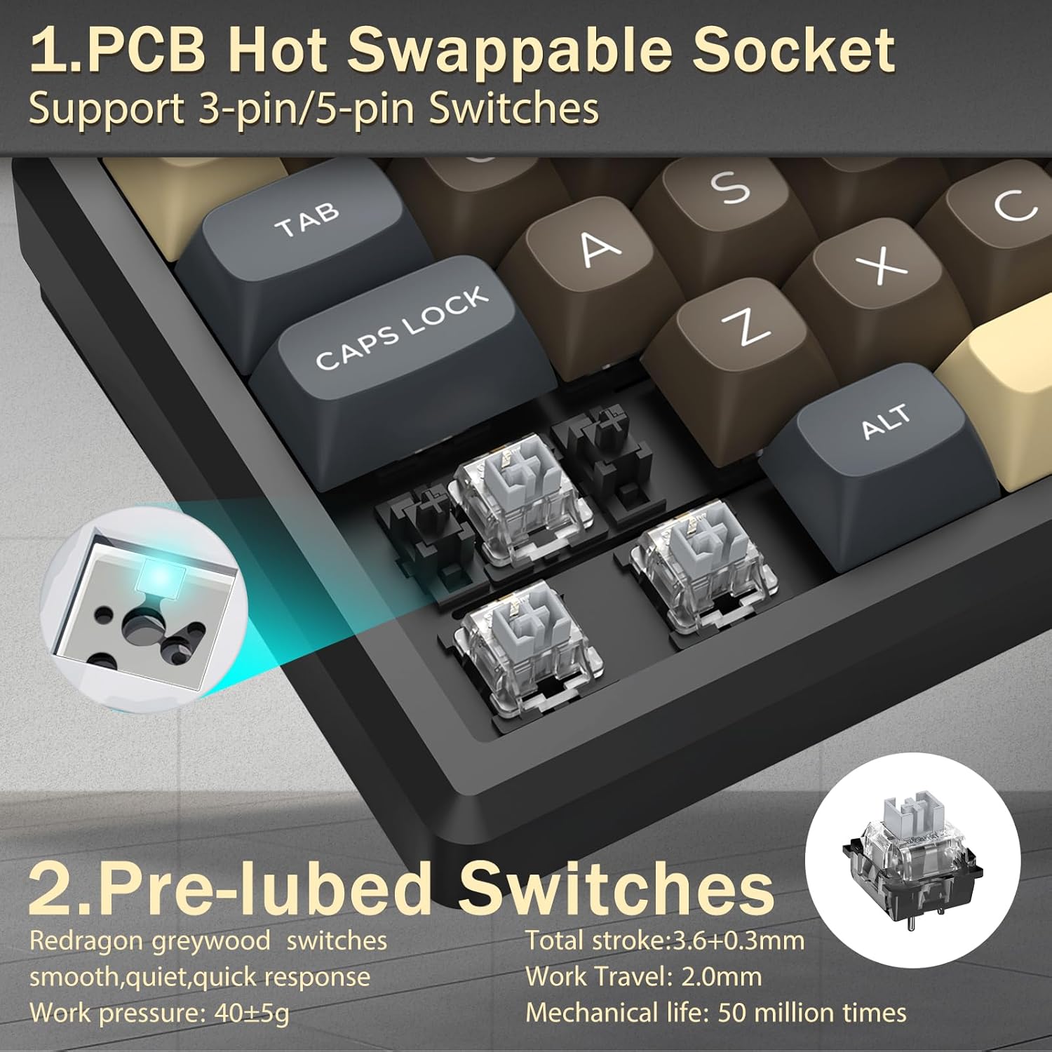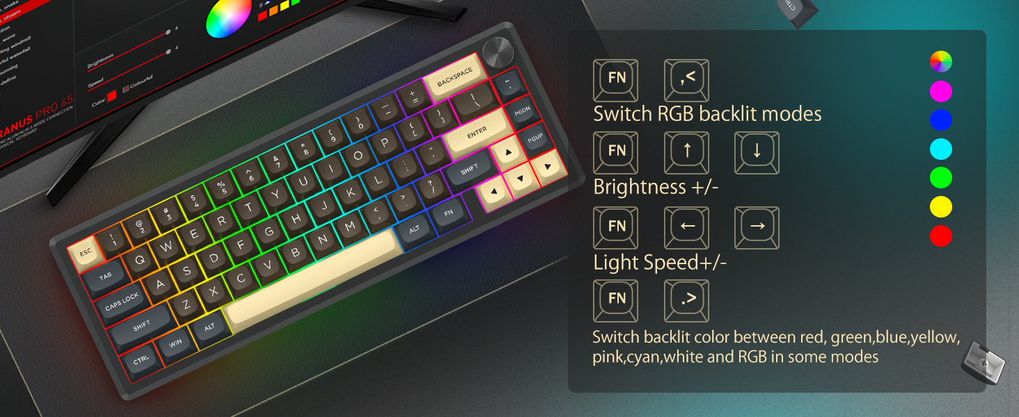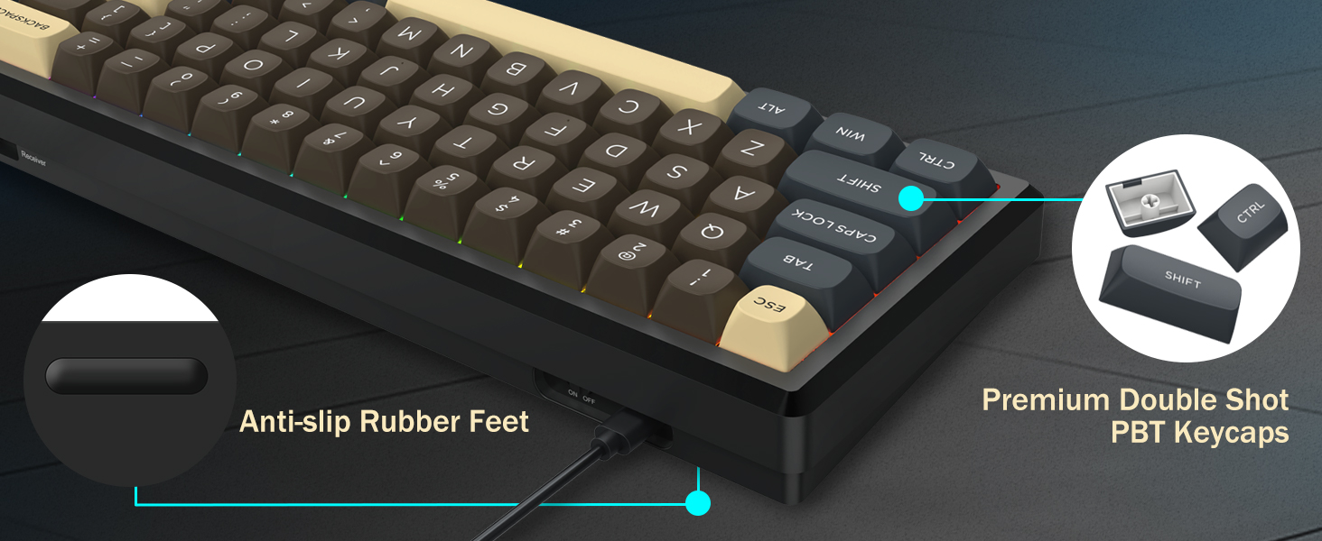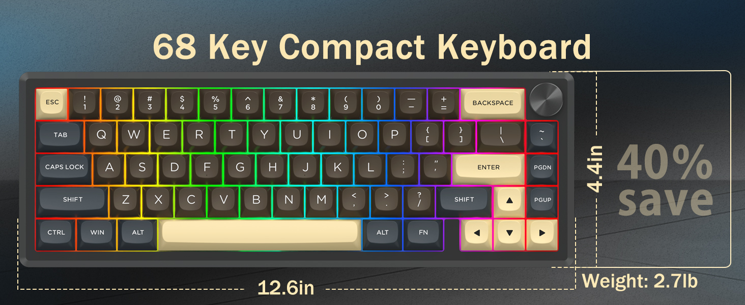Met een indeling van 60% verwijdert dit toetsenbord niet-essentiële toetsen, terwijl de kernfunctionaliteit behouden blijft via toetscombinaties. Dit ontwerp helpt de bureaurommel te verminderen en biedt meer ruimte voor muisbewegingen, waardoor het geschikt is voor zowel gaming- als productiviteitsomgevingen.