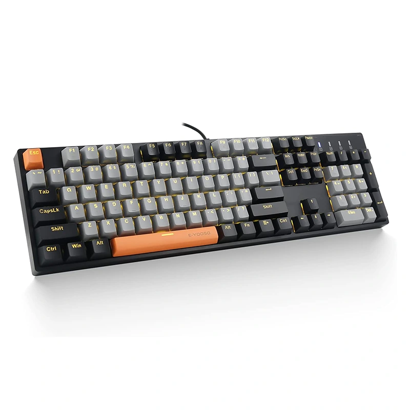 E-YOOSO Z-14 104 toetsen full-size effen geel verlicht mechanisch gamingtoetsenbord met rode schakelaar. Goede textuur, betaalbare prijs, kan games spelen en samenwerken