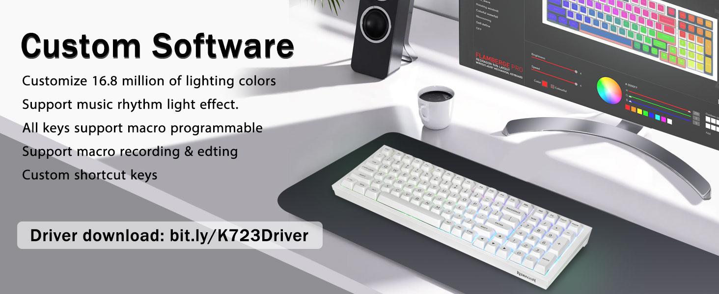 Mechanisch gamingtoetsenbord:K723 is een eersteklas mechanisch toetsenbord voor zowel werk als game. Met 16 RGB-lichteffecten om een geweldige sfeer aan de speelkamer toe te voegen. Toetsen ondersteunen macro-aanpassing, waardoor macro-opname en -bewerking mogelijk is, de toetsfunctie en 16,8 miljoen lichtkleuren kunnen worden aangepast, en ondersteuning voor coole muziekritme-lichteffecten met driver. N-key rollover, het toetsenbord kan reageren op meerdere toetsaanslagen tegelijk, wat handig is in zeer spannende realtime games.