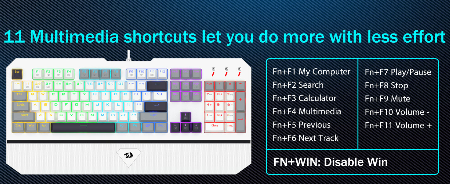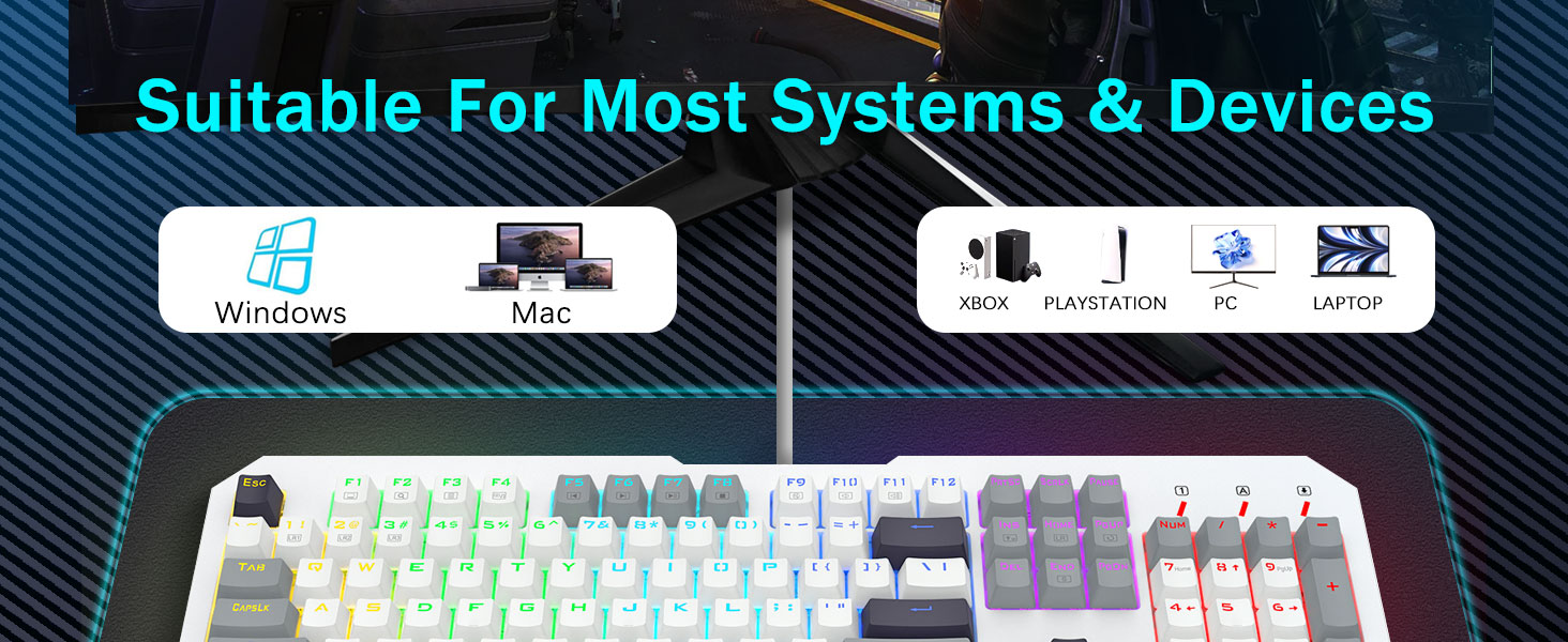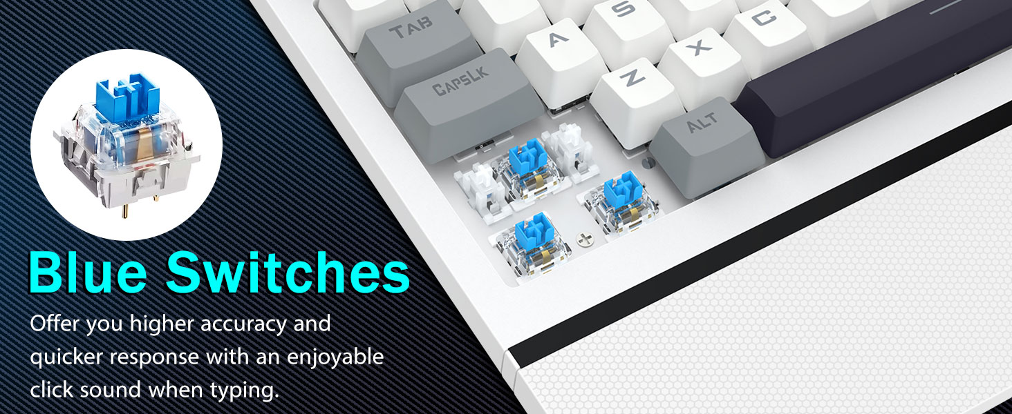 【100% anti-ghosting en 11 multimediasnelkoppelingen】Ons pc-toetsenbord is voorzien van klikbare blauwe schakelaars die bliksemsnelle responstijden en opmerkelijke nauwkeurigheid bieden. Elke toetsaanslag produceert een bevredigend klikgeluid, waardoor uw typervaring wordt verbeterd. Met een diepere toetsafstand, sterkere feedback en een grotere toetsafstand is typen niet alleen nauwkeuriger, maar ook veel comfortabeler. Als je fan bent van dat tastbare, "klikachtige" gevoel, dan is ons toetsenbord de perfecte keuze voor jou.