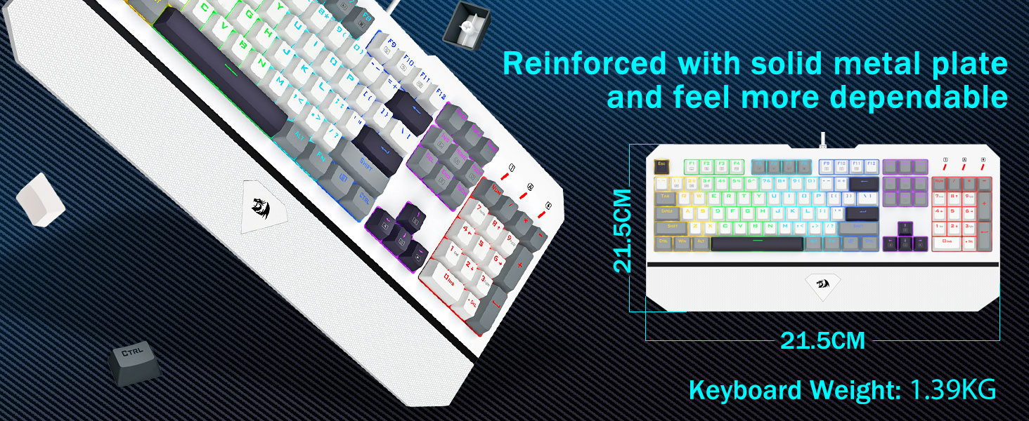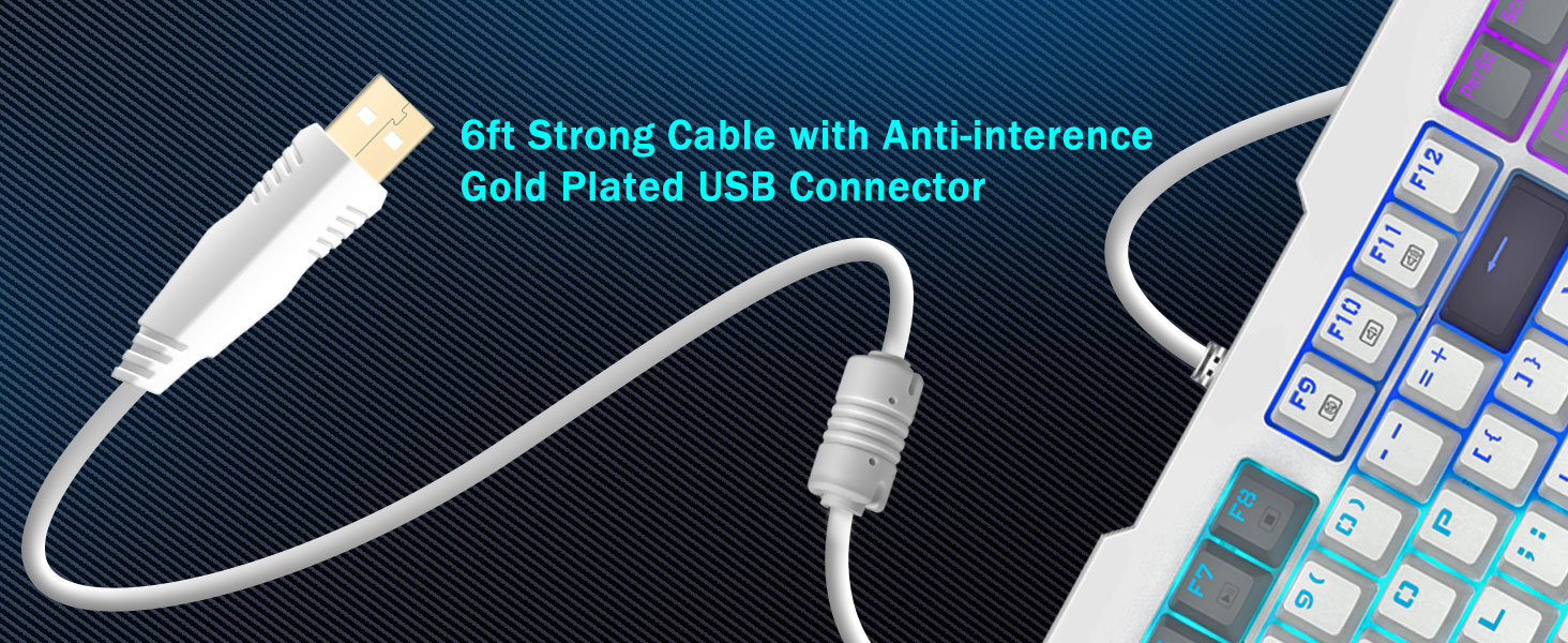【Hoogwaardig toetsenbord van volledige grootte met 104 toetsen】Het toetsenbordpaneel is gemaakt van een hoogwaardige metaallegering en ABS-materiaal en is extreem stevig en bestand tegen krassen. De vergulde USB-connector zorgt voor een stabiele, betrouwbare verbinding voor ultieme gameprestaties. Met een gewicht van 1,39 kg voelt dit toetsenbord als een stevige tank in uw handen en biedt het ongeëvenaarde stabiliteit tijdens het gebruik.