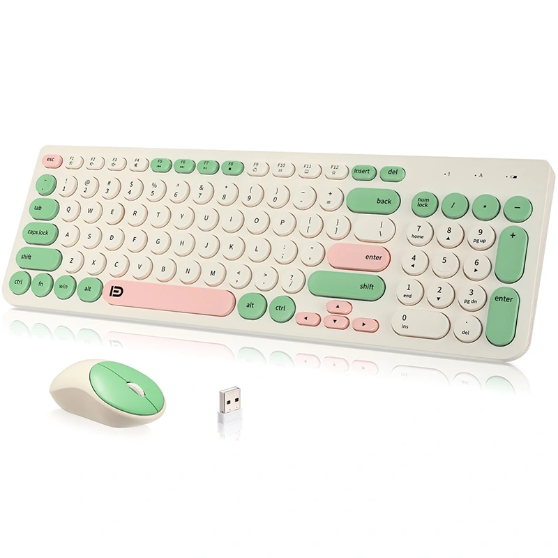 Draadloos toetsenbord en muis 2,4 GHz combo, retro-schrijfmachine met ronde toetsen, 104 toetsen Full-size USB stille schattige muis voor desktop, laptop en computer
